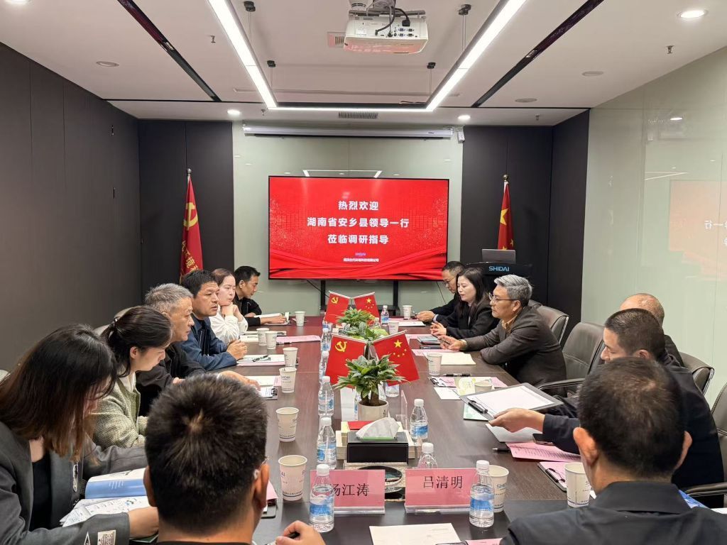 2025年11月6日,安乡县组织部副部长王郁,统战部副部长、县工商联书记潘,县团委书记陈佩等领导一行莅临武汉仕代环境科技有限公司开展考察交流,武汉安乡商会执行会长徐新华,常务副会长李华、汤志伟,秘书长吕清明等全程陪同。公司董事长李泽君、执行总经理杨建军、副总经理杨江涛等热情接待。